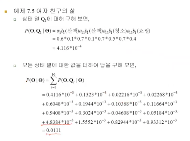 평가 : 모델 theta가 주어진 상황에서, 관측벡터 O를 얻었을때, P(O|theta)? / 동적 프로그래밍 / 그녀가 일주일 연속으로 쇼핑만 할 확률은?