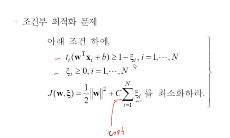 선형 분리 불가능한 경우 Cost function 도입 0=<a=< C